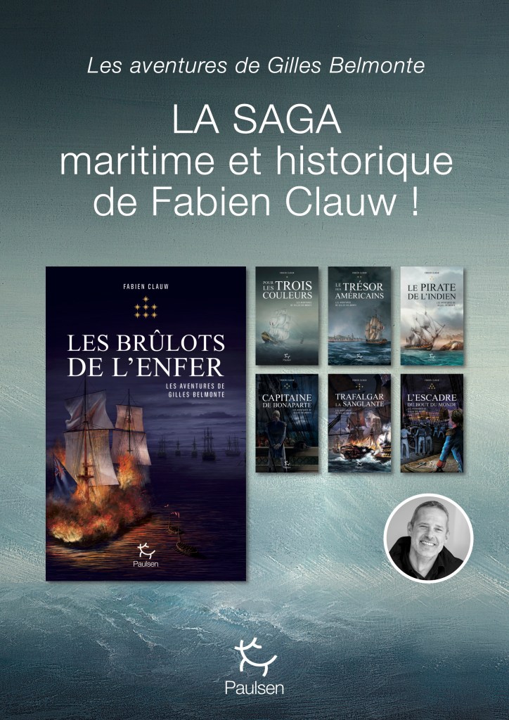 Fabien Clauw a consacré sa vie à la mer. Ancien coureur au large, il a couru 3 Solitaires du Figaro et skippé de nombreux équipages sur de multiples championnats internationaux. Il exerce ensuite pendant 10 années en qualité de cadre marketing dans le secteur du nautisme et de la survie en mer. Il fonde son école de croisière évènementielle – Mer belle évènements – à la Rochelle en 2010 et entreprend un tour de l’Atlantique à la voile de 18 000km et 9 neuf mois de voyages à travers 12 pays. Son premier roman – Pour les trois couleurs – voit le jour en 2015 après trois années d’écriture. Il vit aujourd’hui sur son voilier à la Rochelle et développe son activité évènementielle. Pour les trois couleurs, Le Trésor des Américains et Le Pirate de l’Indien furent salués par la critique et accueillis avec enthousiasme par les lecteurs, recevant notamment la mention de l’Académie de Marine (2016), le prix Écume de Mer (2018) et le prix Marine Bravo Zulu (2018).